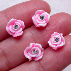 Mini Rose Cabochon w/ Clear Rhinestones (4pcs / 8mm ...