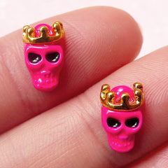 Mini Skull Head w/ Crown Cabochons (2pcs) (Hot Pink ...
