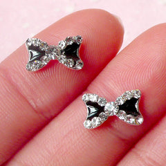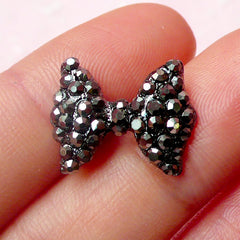 Bow / Bowtie Cabochon with Black Silver Rhinestones ...