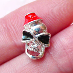 Tiny Funky Skull Head Cabochon w/ Red Hat (1pc / Sil...