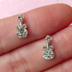 Mini Acoustic Guitar Cabochon (2pcs) (Silver w/ Clea...