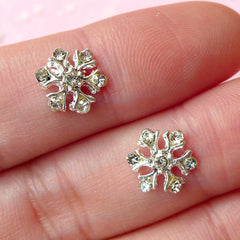 Mini Snowflakes Cabochon (2pcs) (Silver w/ Clear Rhi...