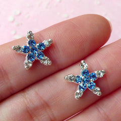 Mini Sea Star Cabochon (2pcs) (Silver w/ Blue and Cl...