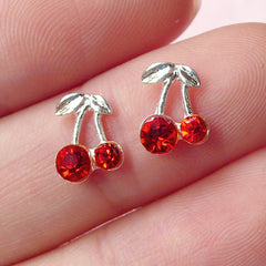 CLEARANCE Mini Cherry Cabochon (2pcs) (Silver w/ Red...