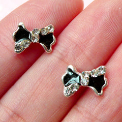Tiny Bow Bowtie Cabochon (2pcs) (Silver w/ Clear Rhi...