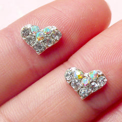 Tiny Heart Cabochon (2pcs) (Silver w/ Clear and AB R...