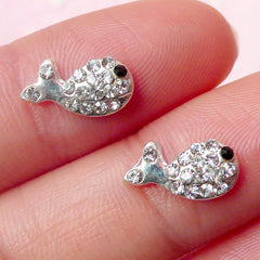 Mini Fish Cabochon (2pcs) (Silver w/ Clear Rhineston...