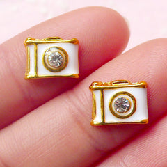 Mini Camera Cabochon (2pcs) (Gold, White w/ Clear Rh...