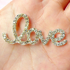 Love Metal Cabochon (Silver w/ Clear Rhinestones) (4...