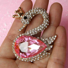 Metal Swan Cabochon with Rhinestones / Big Bird Cabo...