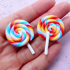 Rainbow Lollipop Cabochon | Polymer Clay Candy | Fai...