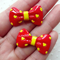 Red Bow Cabochon / Bowtie Kawaii Cabochons (2pcs / 3...