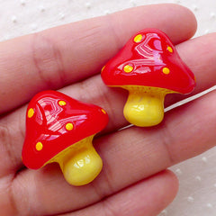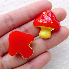 Red Mushroom Cabochons (2pcs / 24mm x 25mm / Flatbac...