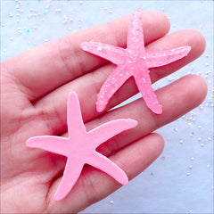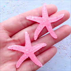 Beautiful starfish cabochons embedded with Iridescent mica flakes. Excellent for phone case decoden, mixed media art, scrapbooking, card making, party supplies, kawaii jewelry and accessories...