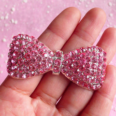 Metal bow tie cabochon with bling bling rhinestones. Great for phone case deco (decoden), jewellery making and any bling bling embellishment. Color: Silver with pink...