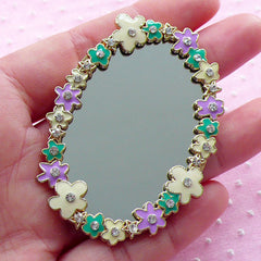 Lovely mirror cabochon decorated with flower pattern and rhinestones. The back is flat and it's excellent to use with phone case decoden, scrapbooking, home decor,...