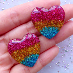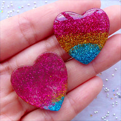 Gradient Glitter Rainbow Heart Cabochons | Kawaii Ca...
