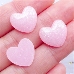 Tiny Mini Heart Cabochons with Glitter | Glittery La...