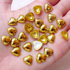 Heart Acrylic Cabochons (25pcs / 10mm / Gold / Flatb...