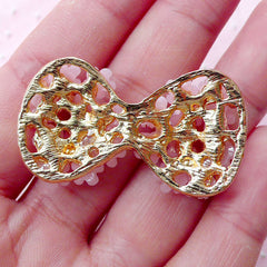 Flower Bow Metal Cabochon w/ Bling Bling Clear Rhine...