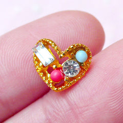Tiny heart cabochon. Great for decorating your miniature cupcake, sweets as well as earrings making, nail decoration, scrapbooking, etc. Quantity: 1 piece Color: Gold with...