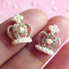 Tiny Crown Cabochon Set (2pcs) (Silver w/ White Pear...