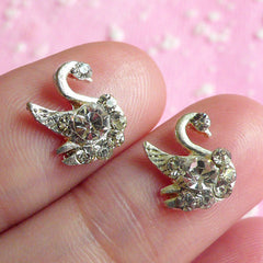 Tiny Swan Cabochon Set (2pcs) (Silver w/ Clear Rhine...