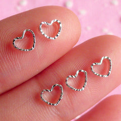 Tiny Heart Cabochon Set (Silver) (5pcs) Fake Miniatu...