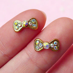 Tiny Bowtie Bow Cabochon (2pcs) (Gold w/ AB Clear Rh...