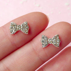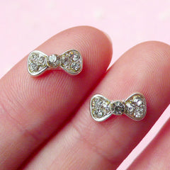 Tiny Bow Bowtie Cabochon (2pcs) (Silver w/ Clear Rhi...