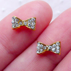Tiny Bow Bowtie Cabochon (2pcs) (Gold w/ Clear Rhine...