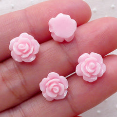 Tiny Light Pink Rose Flower Cabochon Set (4pcs) (10m...