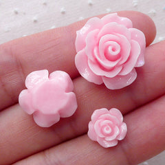Flower cabochons. Excellent for all kind of deco.. Quantity: 3 pcs Size: approx. 2.1cm (Diameter) Color: Pink Material: Resin