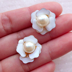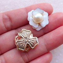 White flower metal cabochon. Great for cell phone deco, scrapbooking, jewelry making, etc. Color: White and Gold with White Pearl Size: approx. 1.5cm (Diameter) Quantity:...