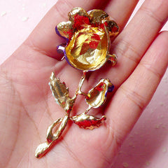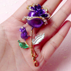 Rose Flower Metal Cabochon (Gold and Purple w/ Clear...