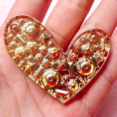 Heart Metal Cabochon (Gold with Mixed Rhinestones / ...
