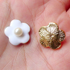 CLEARANCE White Flower Cabochon (White & Gold w/ Whi...