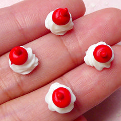 Whipped Cream w/ Red Cherry Cabochons (4pcs / 8mm x ...