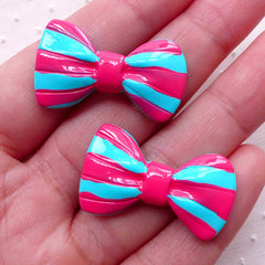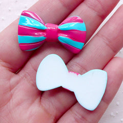 Kawaii Bowtie Cabochons w/ Stripe (2pcs / 31mm x 18m...