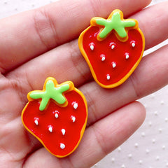 Strawberry Sugar Cookie Cabochons (2pcs / 23mm x 27m...