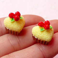 Dollhouse Cupcake Resin Cabochon Heart Shape (2pcs /...
