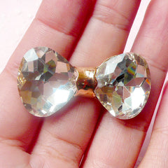 Bowtie Bow Metal Cabochon (Gold with Big Clear Rhine...