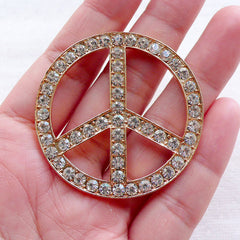 Peace Sign Metal Cabochon w/ Clear Rhinestones (1 pi...