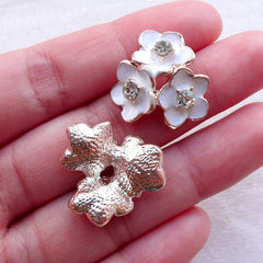 Triple Flowers Enamel Cabochon w/ Clear Rhinestones ...