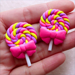 Cute Lollipop Cabochons / Kawaii Lolly with Ribbon /...