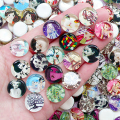 15mm glass picture cabochons with flat back! Excellent for jewelry and accessory DIY, fridge magnet making, scrapbooking, mixed media art, etc.