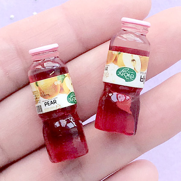 3D Doll House Korean Fruit Juice | 1:6 Scale Dollhouse Beverage | Miniature Drink Bottle | Kawaii Craft (2pcs / Red Pear / 10mm x 29mm)