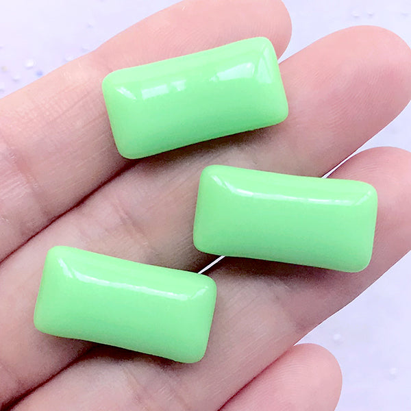 Actual Size Chewing Gum Cabochons | Faux Food Jewellery Making | Fake Candy Embellishments (3 pcs / Green / 11mm x 21mm)
