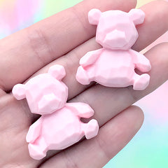 Bear Resin Cabochon | Faceted Animal Embellishments for Decoden | Kawaii Craft Supplies (2 pcs / Pink / 28mm x 30mm)