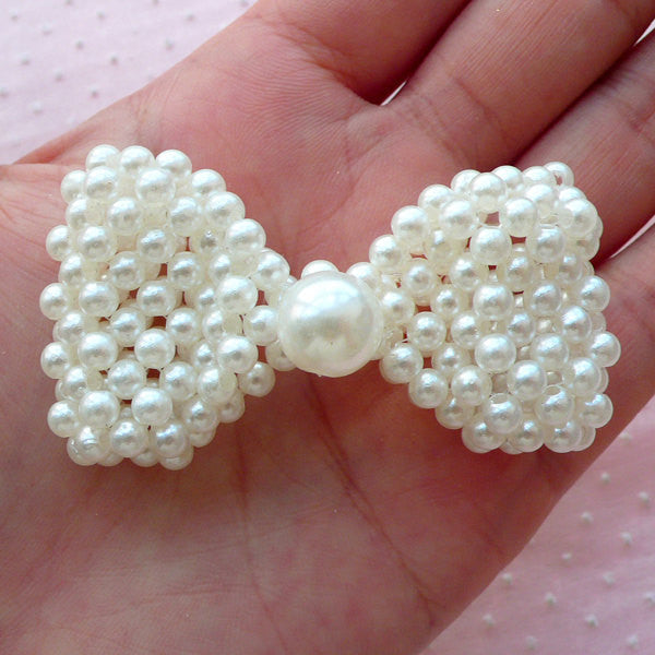 Beautiful big bow made with cream white pearls! Perfect for jewellery making like brooch, hair accessories making as well as for scrapbooking and all kinds of decoration.